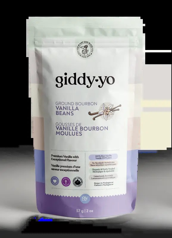 "This is fresher and better tasting than other brands. Adds a full, balanced flavour without adding a sweetness or heaviness like lots of other ground vanillas. We have a preservative allergy in our family which is triggered by vinegars, preservatives in foods and packages, as well as natural preservatives that form in foods as they age. Giddy Yo is never a problem to eat safely whereas many other vanillas we have tried are." Kerri